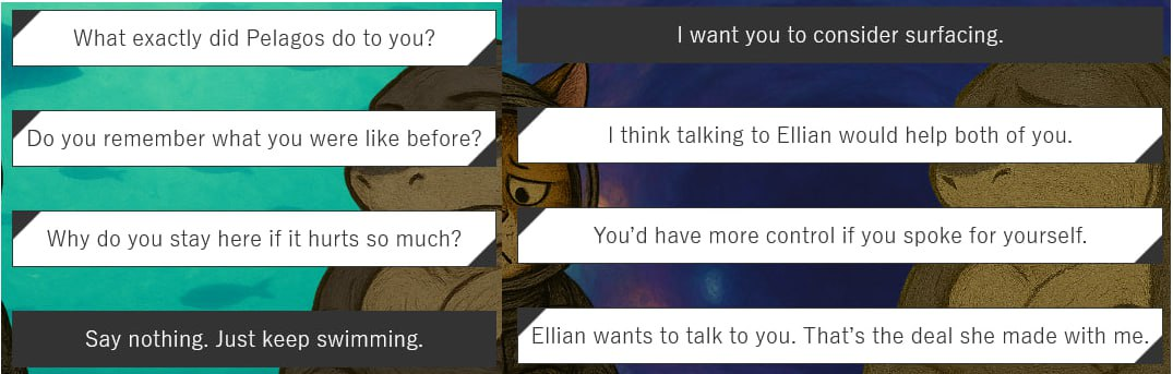 There was no Pelagos Institute, no Noah, no Ellian, and no science subplot. It was just two characters, a cave, and a quiet conversation underwater. That conversation stayed with me for months. It wasn’t about monsters or experiments; it was about two people trapped by their circumstances. That’s when I realized I wanted to turn Drift into something bigger: a visual novel about transformation, and how change isn’t always physical.